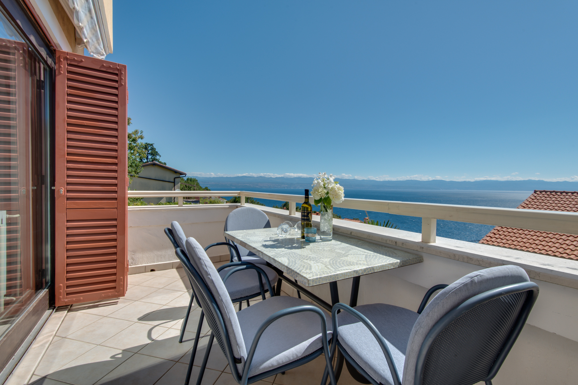 separates Wohnzimmer; Esszimmer und Küche sind eine Einheit; zwei zusätzl. Schlafmögl. auf einer Schlafcouch möglich; mit Balkon; mit Blick auf das Meer
