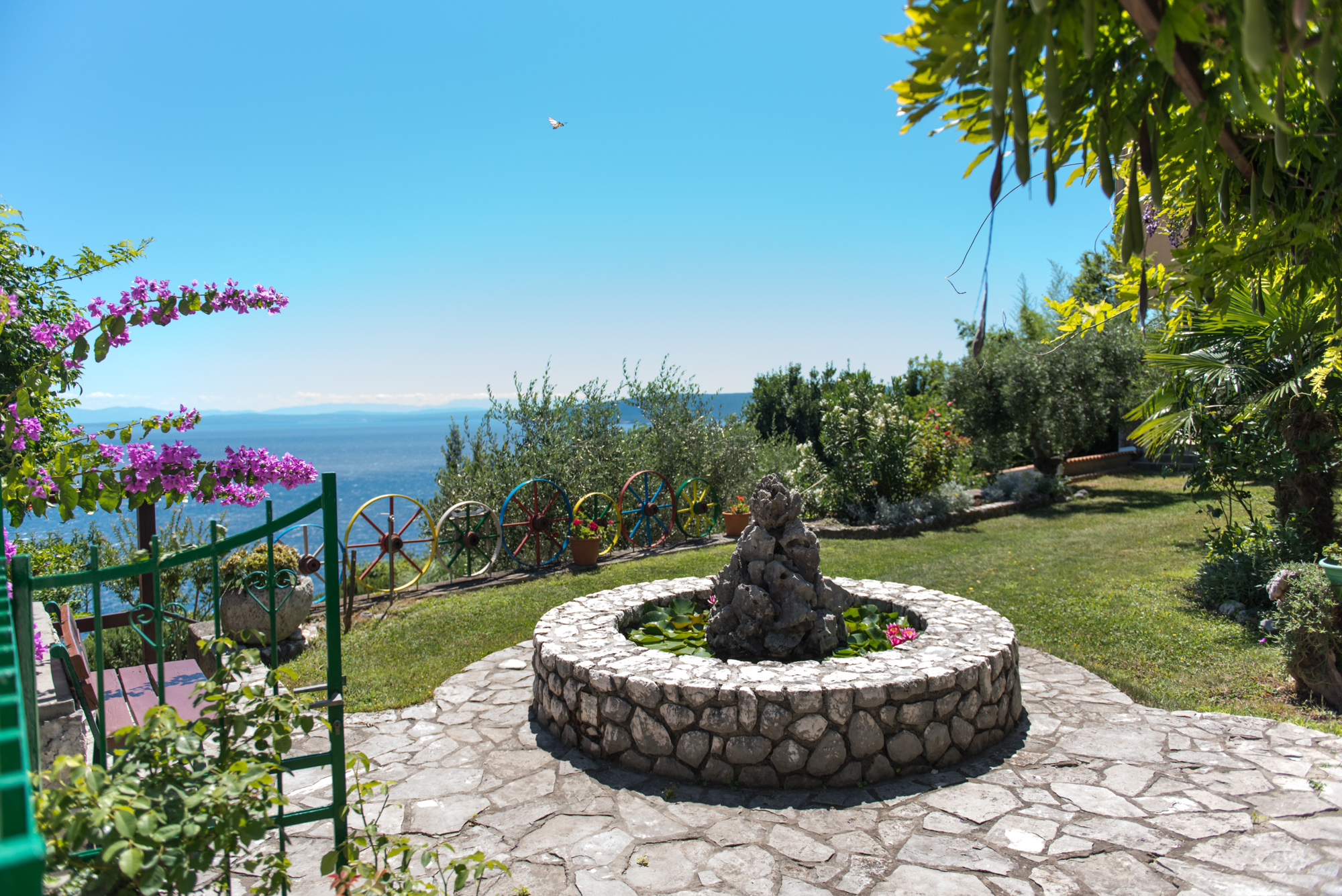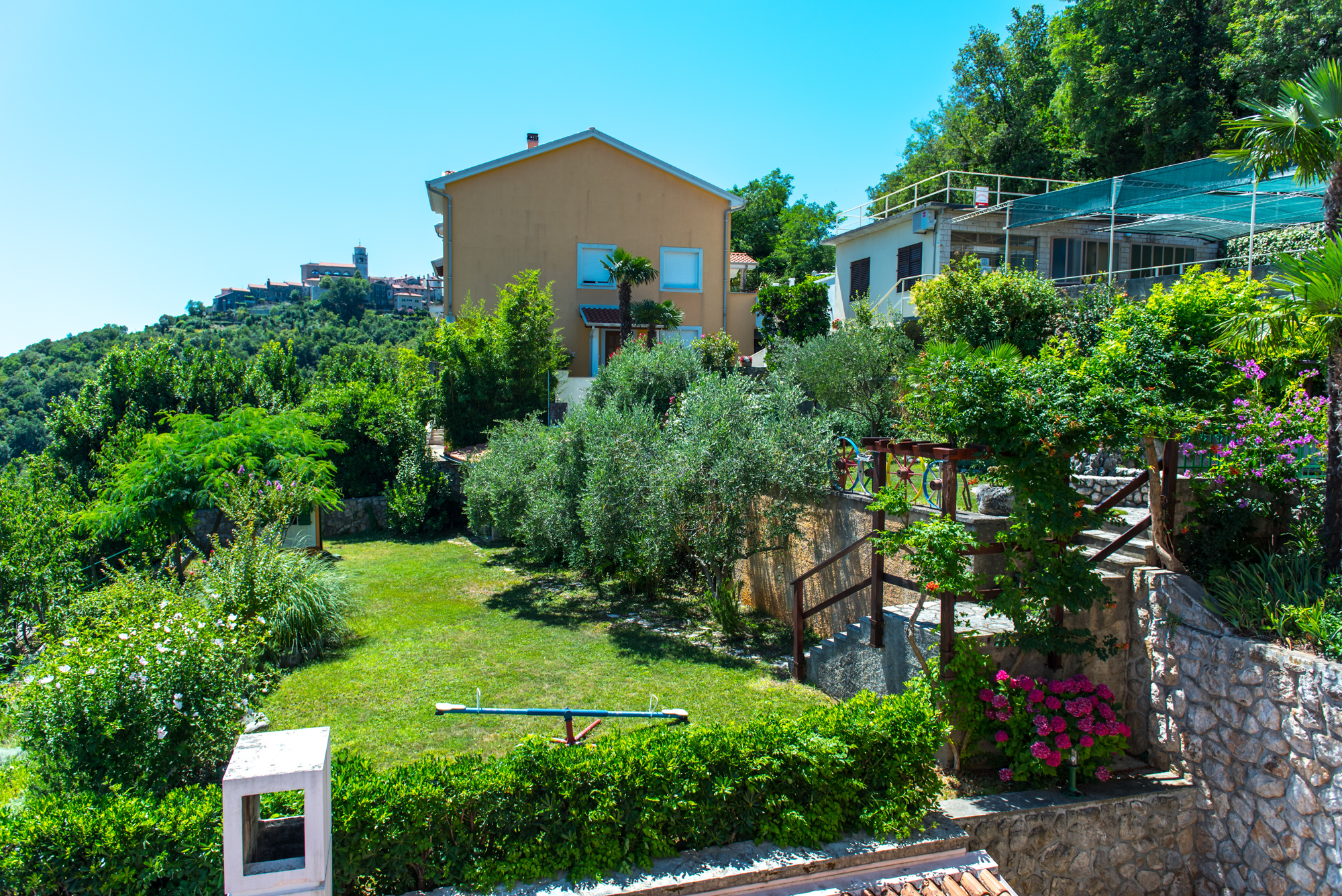 S prekrasnim pogledom na more i stari grad Mošćenice; vrlo dobro održavano; u tišini.